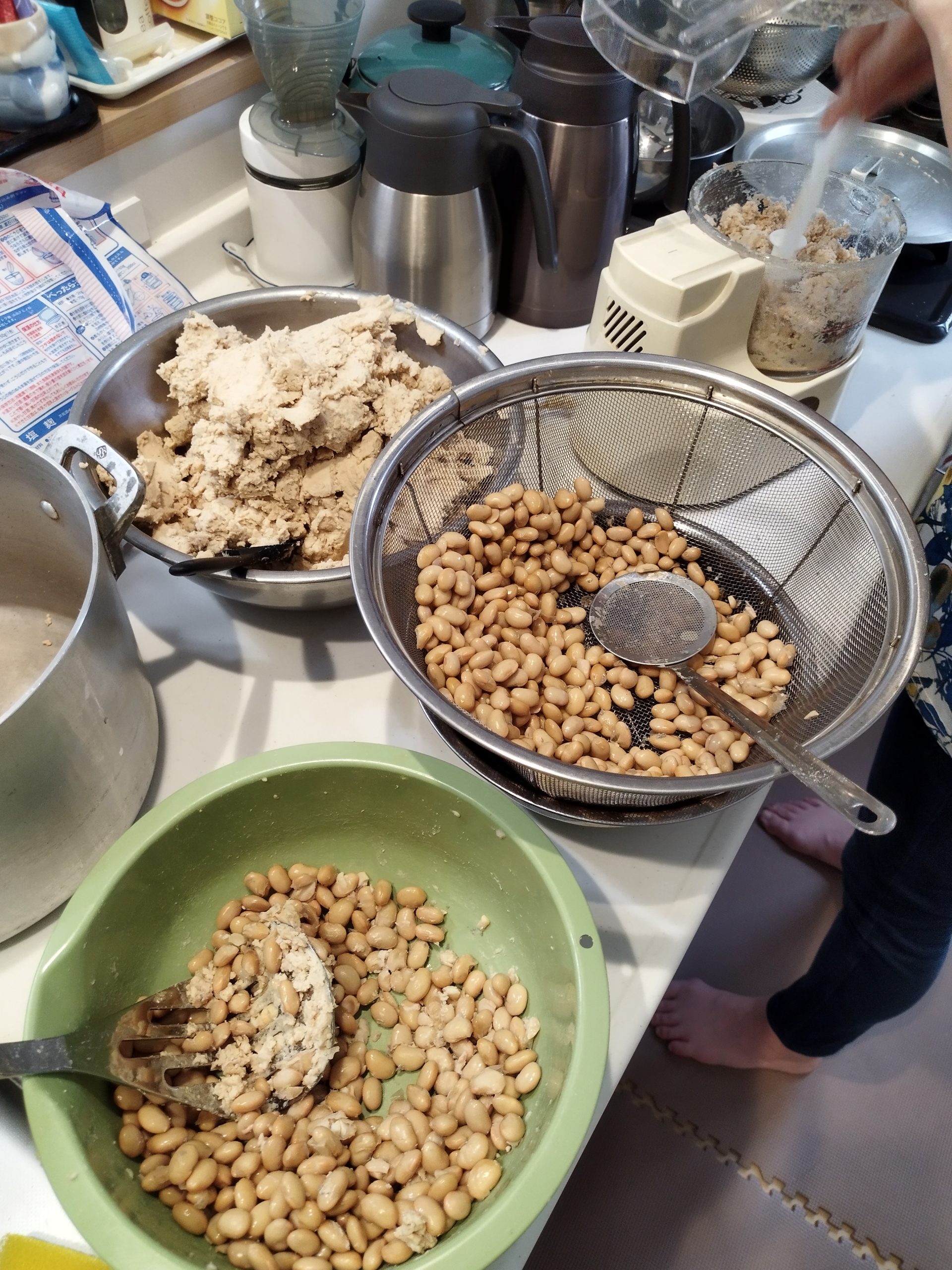 今年2回目の味噌づくりです 柔らかく煮た大豆を細かくペースト状にして、…