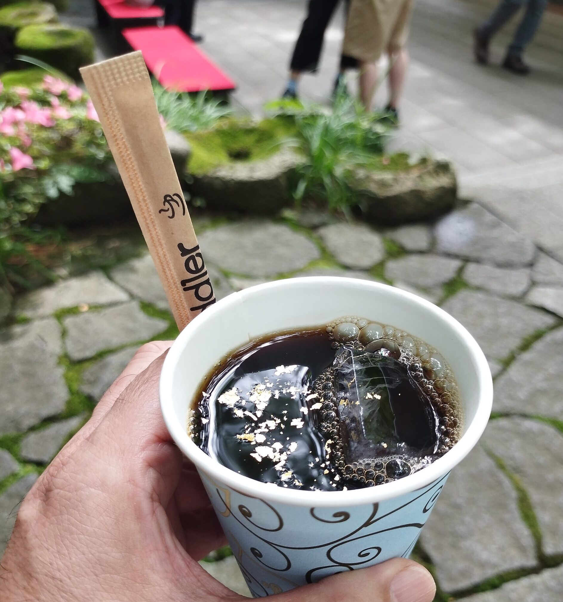 佐渡の金山で金箔入りのコーヒーを飲みました。 金の味は・・・・しません…